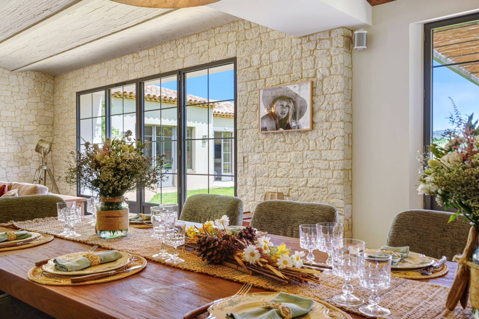 Cette propriété magnifiquement rénovée de 480 m², située sur un terrain vierge de 1,3 hectare bordé d'une forêt et de vignobles, offre à la fois confort et espace, incarnant le charme d'une bergerie contemporaine.