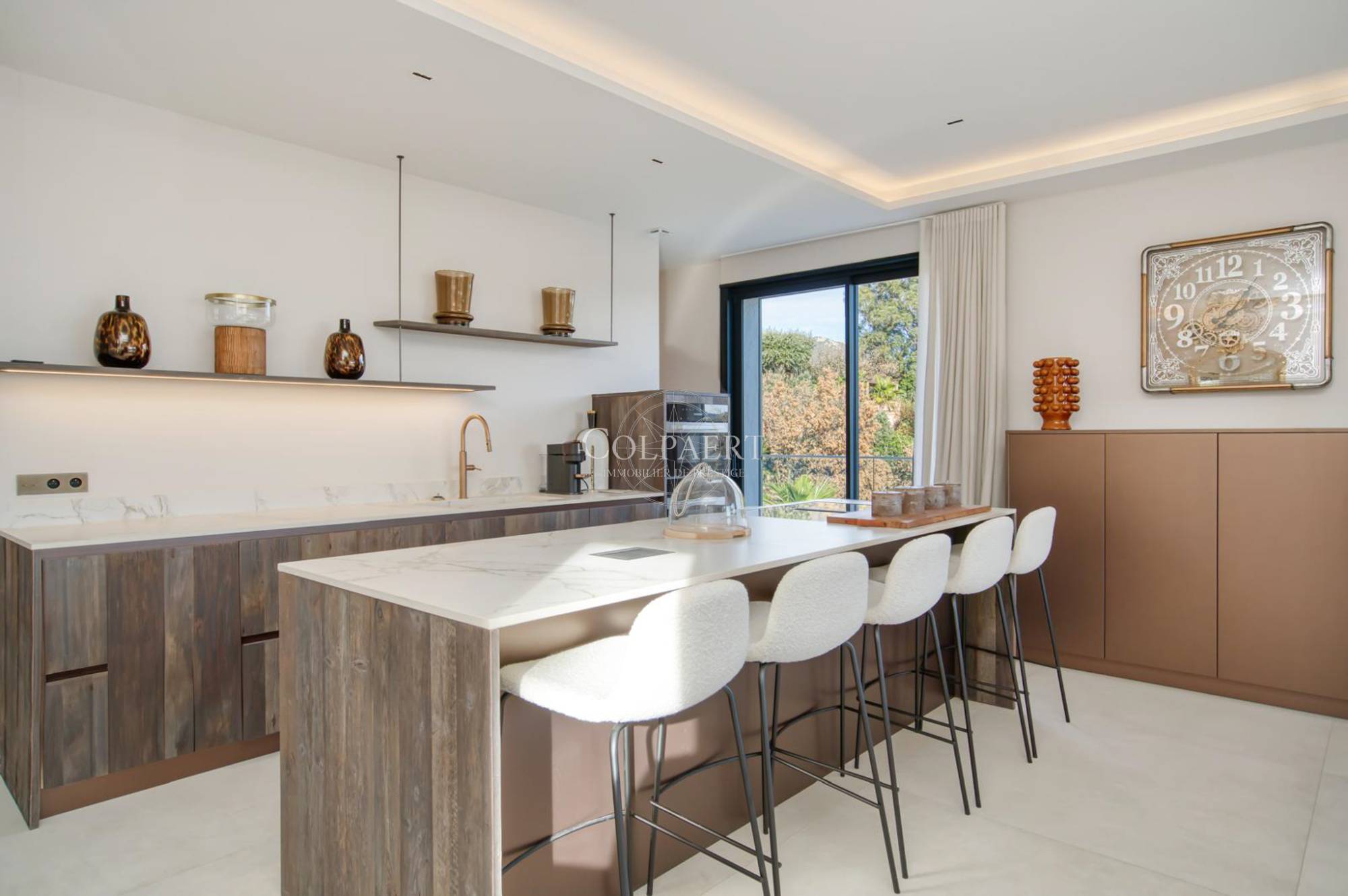 La villa se déploie sur deux niveaux et conjugue avec justesse l’élégance intemporelle de l’architecture provençale et une approche plus contemporaine des volumes et des finitions. Les espaces de vie ont été conçus pour privilégier lumière et fluidité : un salon généreux, une salle à manger accueillante et une cuisine ouverte aux équipements actuels composent un ensemble harmonieux et fonctionnel.