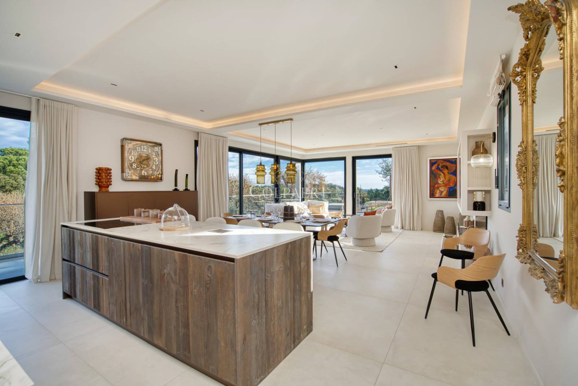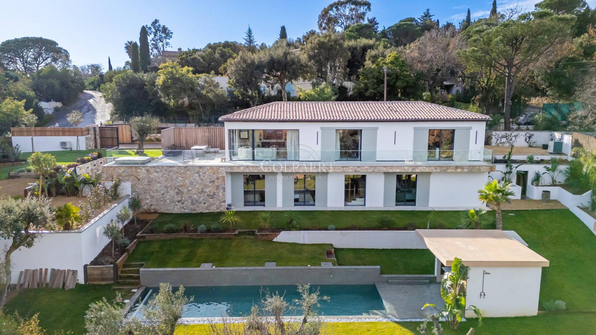 Au sein d’un domaine confidentiel et sécurisé, en légère position dominante, cette propriété d’environ 260 m² profite d’un environnement résidentiel de qualité et d’une vue ouverte sur la végétation environnante, avec un aperçu mer en arrière-plan.
