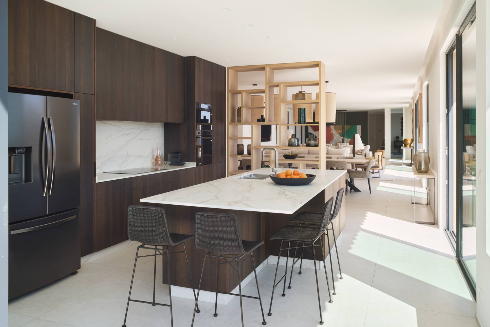 Développant près de 485 m² habitables, la propriété se distingue par des volumes remarquables et une luminosité omniprésente. Le niveau principal accueille une vaste pièce de réception aux lignes épurées, ouverte sur l’extérieur, une cuisine design entièrement équipée, un espace bureau ainsi qu’une suite parentale raffinée.