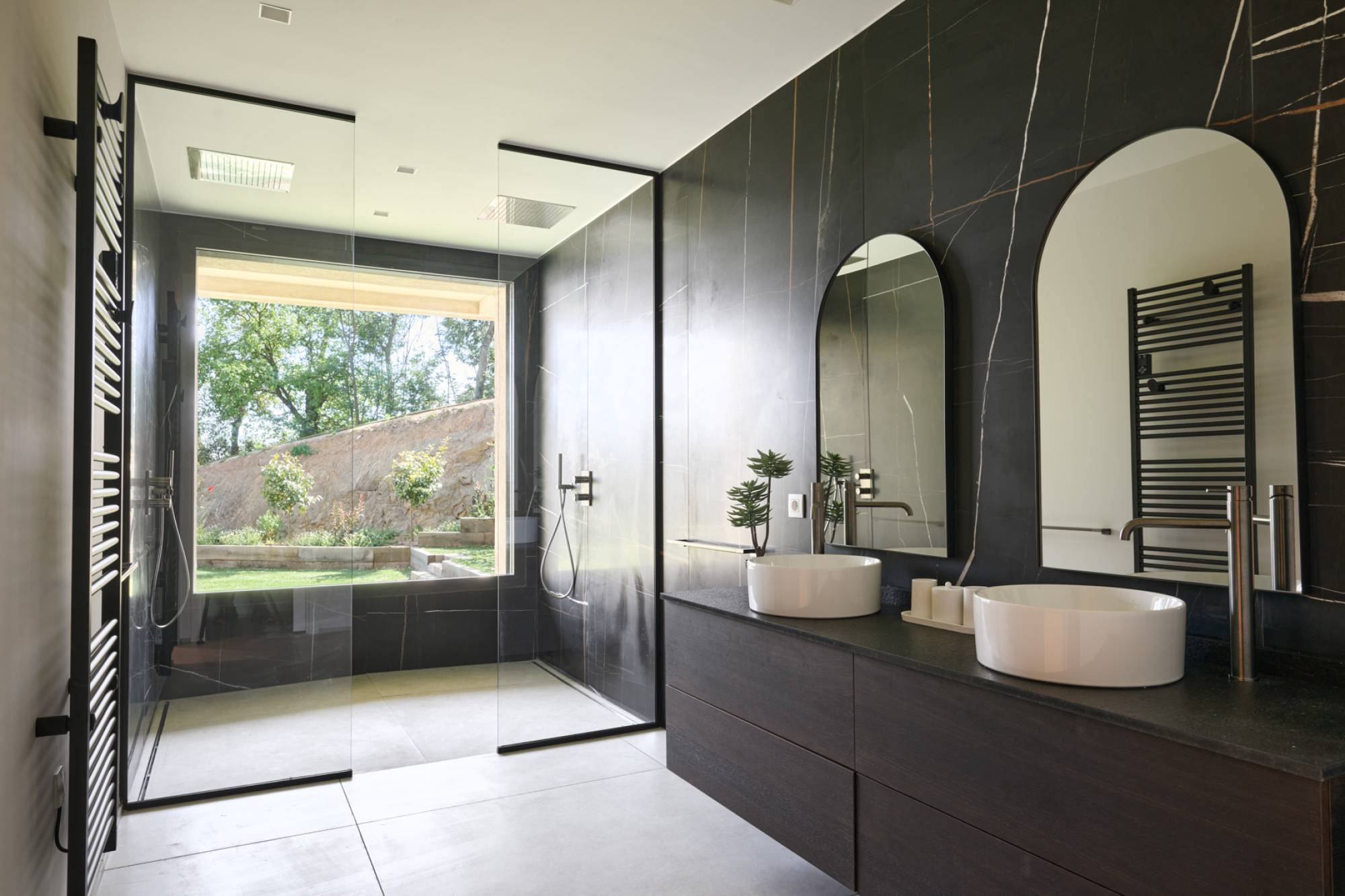 Implantée sur un terrain paysager de 2 502 m², la villa offre de généreuses terrasses propices à la détente, plusieurs zones de convivialité, un terrain de pétanque et une piscine à débordement chauffée avec pool-house, parfaitement intégrée au décor naturel.