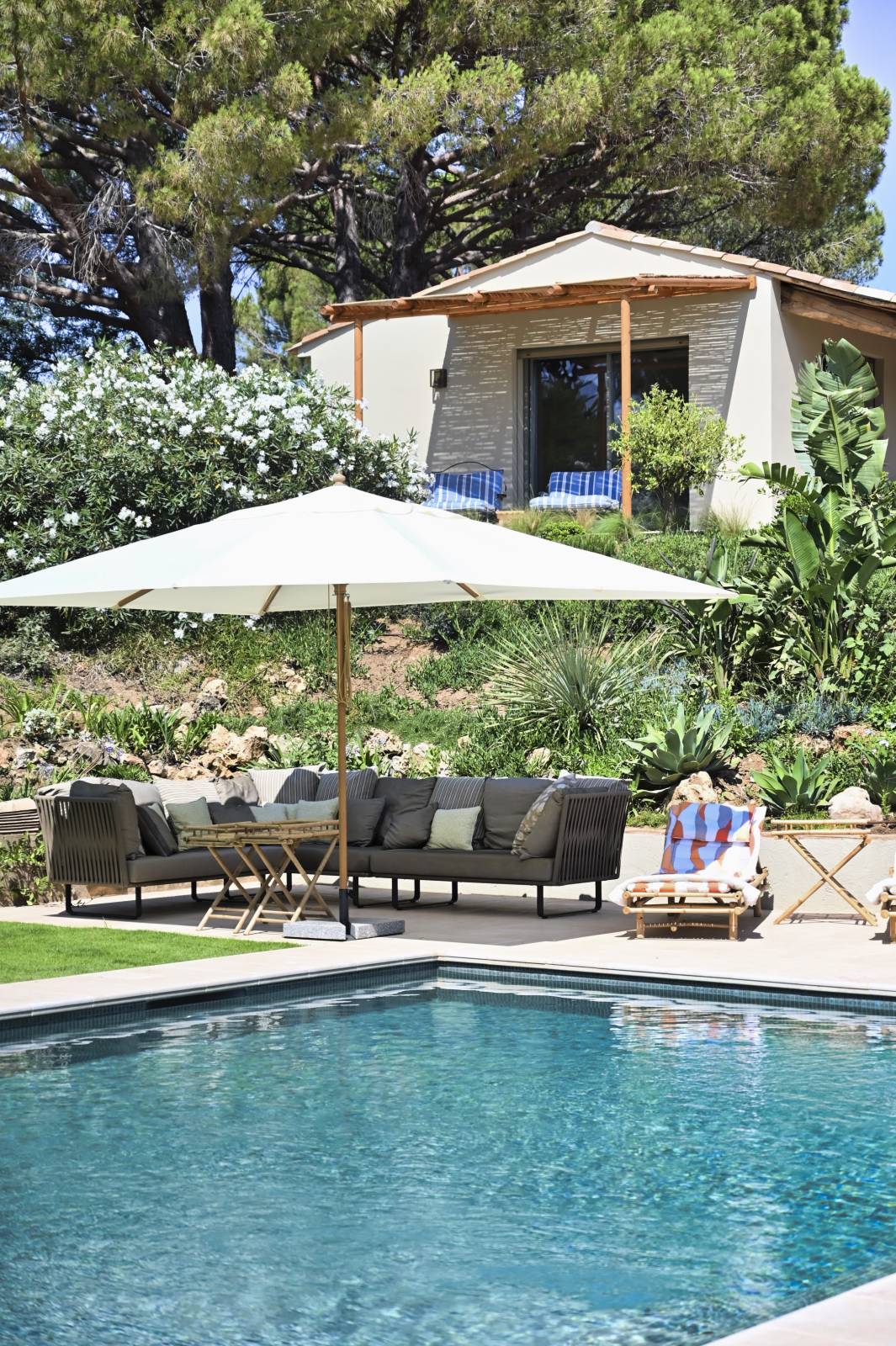 Nichée au cœur d’un paysage provençal luxuriant, entourée de lavandes et de vignes, cette propriété exceptionnelle a été entièrement rénovée avec soin par un architecte de renom. Située dans le quartier très prisé de La Quessine à Ramatuelle, cette villa marie à la perfection le charme méditerranéen et le confort contemporain, à seulement dix minutes de la mer et des plages emblématiques de la Côte d’Azur.