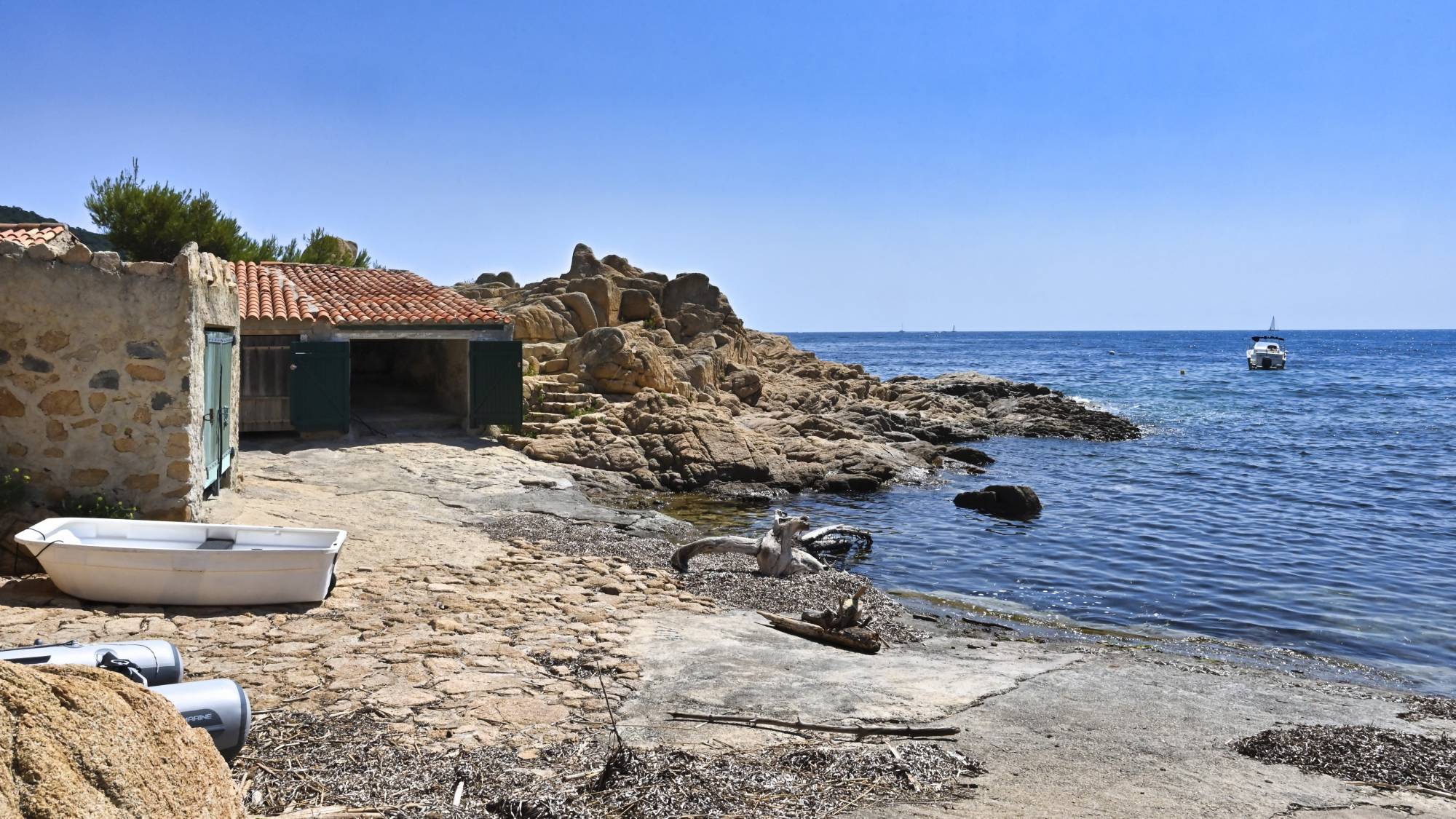 En complément, il est possible d’acquérir un garage à bateau privé en bord de mer, situé à seulement dix minutes à pied de la propriété.