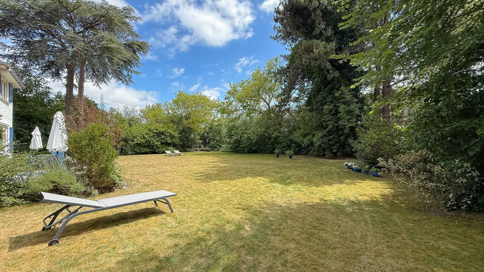 Dès l’entrée, un hall majestueux avec escalier élégant mène vers un intérieur spacieux et fonctionnel. Le séjour se compose de plusieurs espaces de vie et de réception, tous ouverts sur le jardin ensoleillé, à l’abri des regards. La maison comprend également une cuisine séparée, un garage avec buanderie et un sous-sol.